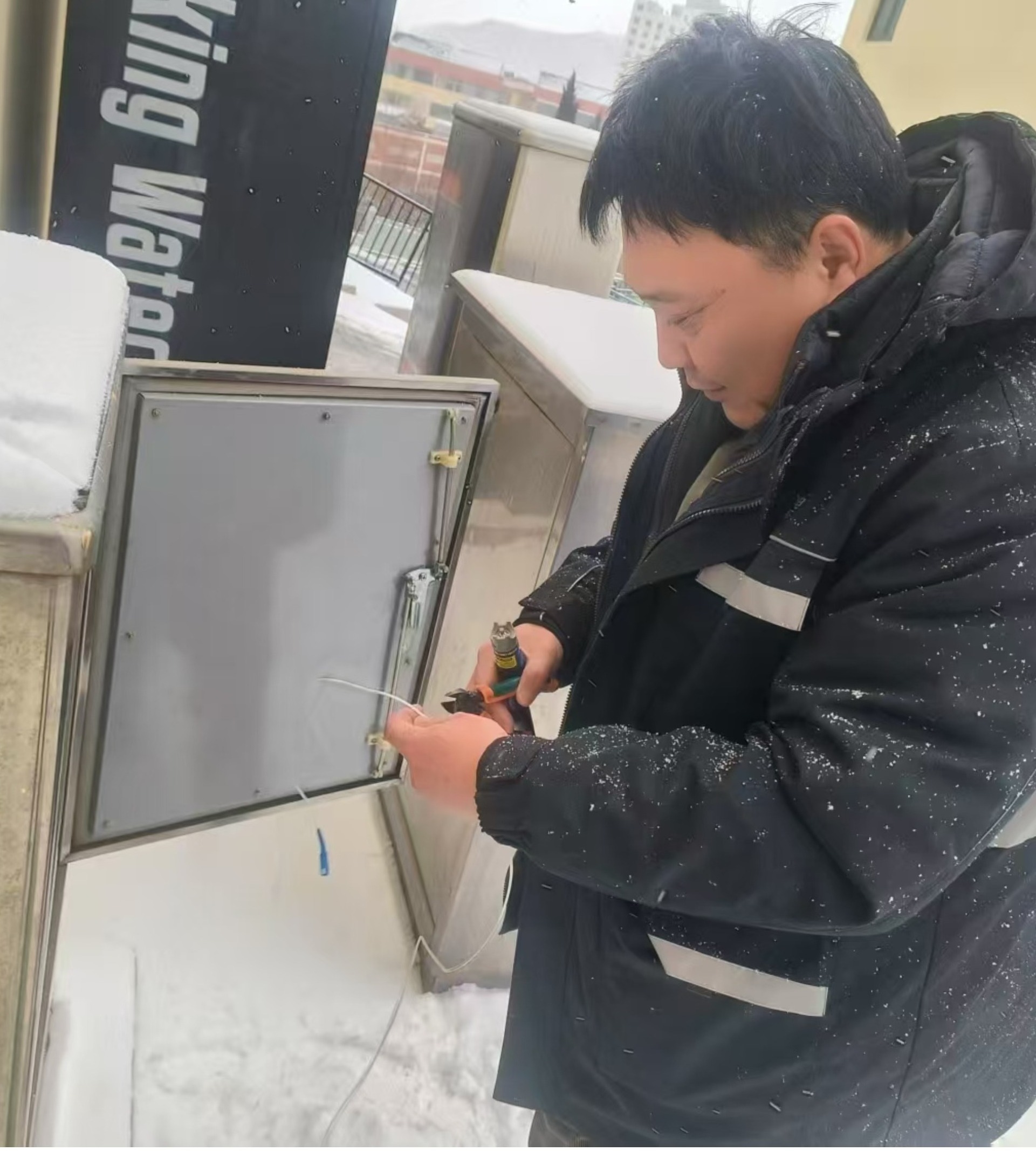 寒潮來襲,日照莒縣分公司始終堅(jiān)持客戶至上的服務(wù)理念,客戶經(jīng)理接到報(bào)修電話,第一時(shí)間趕到現(xiàn)場,進(jìn)行故障排查、信號恢復(fù),保障客戶收視與上網(wǎng)體驗(yàn)。圖為莒縣分公司直屬營業(yè)部客戶經(jīng)理王寶昊在桃園北區(qū)處理信號故障。